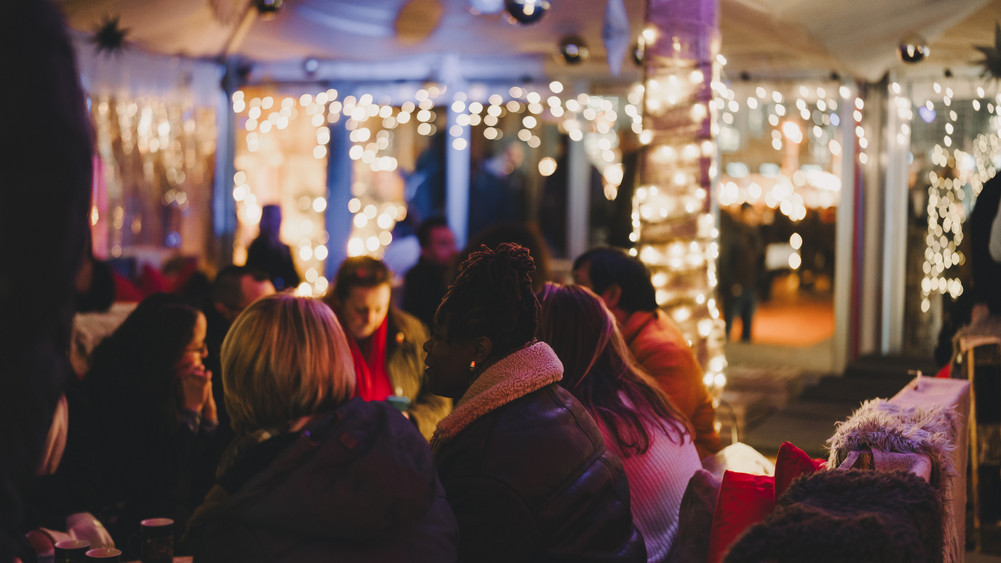 planet radio präsentiert die City Alm | Winterzauber. Auf dem Dach des Konstabler Parkhauses geht es auch diesen Winter festlich ab: Die City Alm ist wieder am Start – mit Lichterketten, heißem Glühwein und richtig gemütlicher Hüttenvibe-Atmosphäre mitten in Frankfurt.