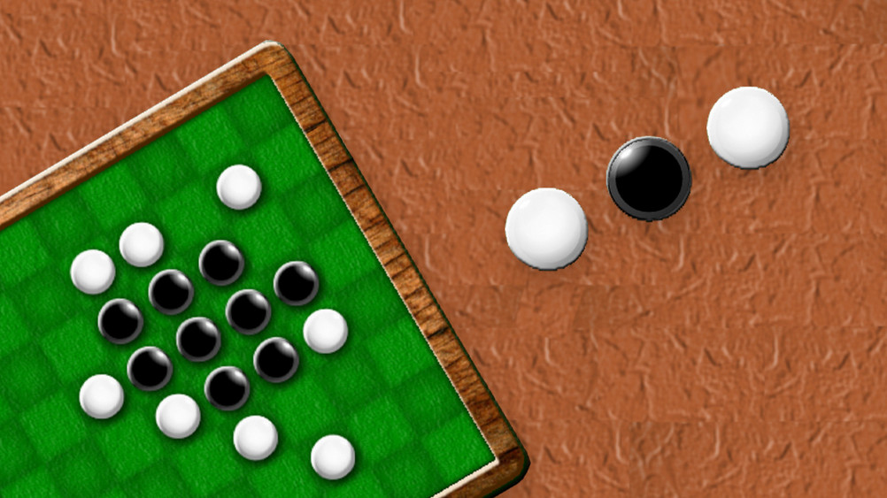 Du gegen den Computer. Wer schafft es, die meisten Steine zu fangen? Lege einen Spielstein so, dass die Steine des Computers in einer geraden Linie eingeschlossen sind. Damit machst du alle Steine in der Linie zu deinen. Wenn keiner mehr setzen kann, ist das Spiel vorbei. Wer die meisten Steine hat, gewinnt.